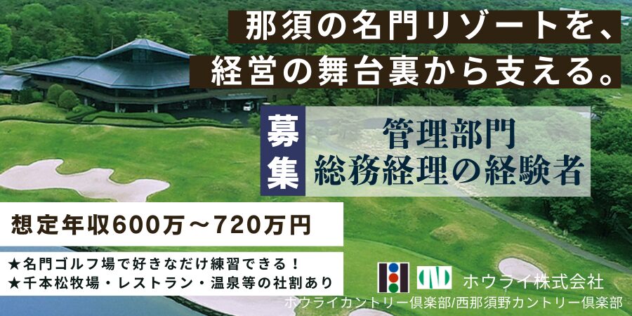 名門ゴルフ場のバックオフィスから、100名規模の組織運営を支える要のポジションです。